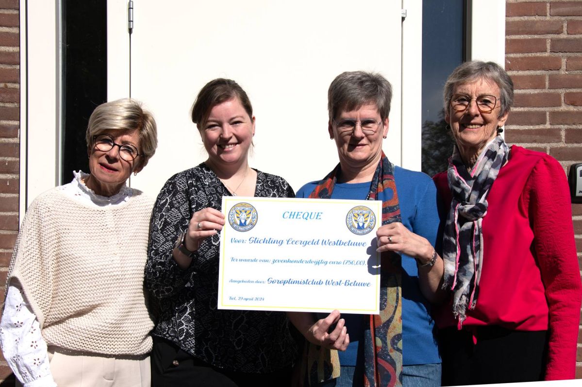 Soroptimistclub West-Betuwe overhandigt aan de Stichting Leergeld Westbetuwe een bedrag van 750 euro.